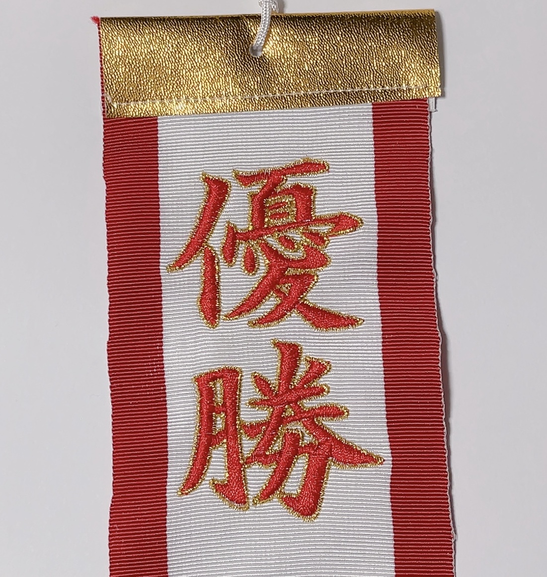チーム名や個人名を刺繍したペナントリボンはいかがでしょうか。